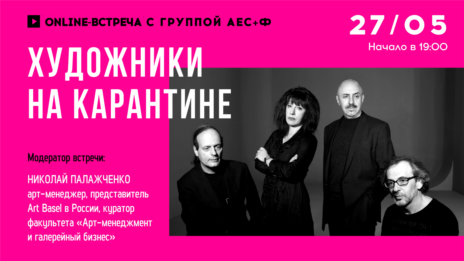 27 мая приглашаем на открытую онлайн-встречу с участниками российской междисциплинарной арт-группы AES+F. Татьяна Арзамасова, Лев Евзович, Евгений Святский и Владимир Фридкес расскажут о своих проектах и о бизнес-составляющей работы художника, а также об изменениях с наступлением пандемии. В конце лекции слушателей ждёт сюрприз!