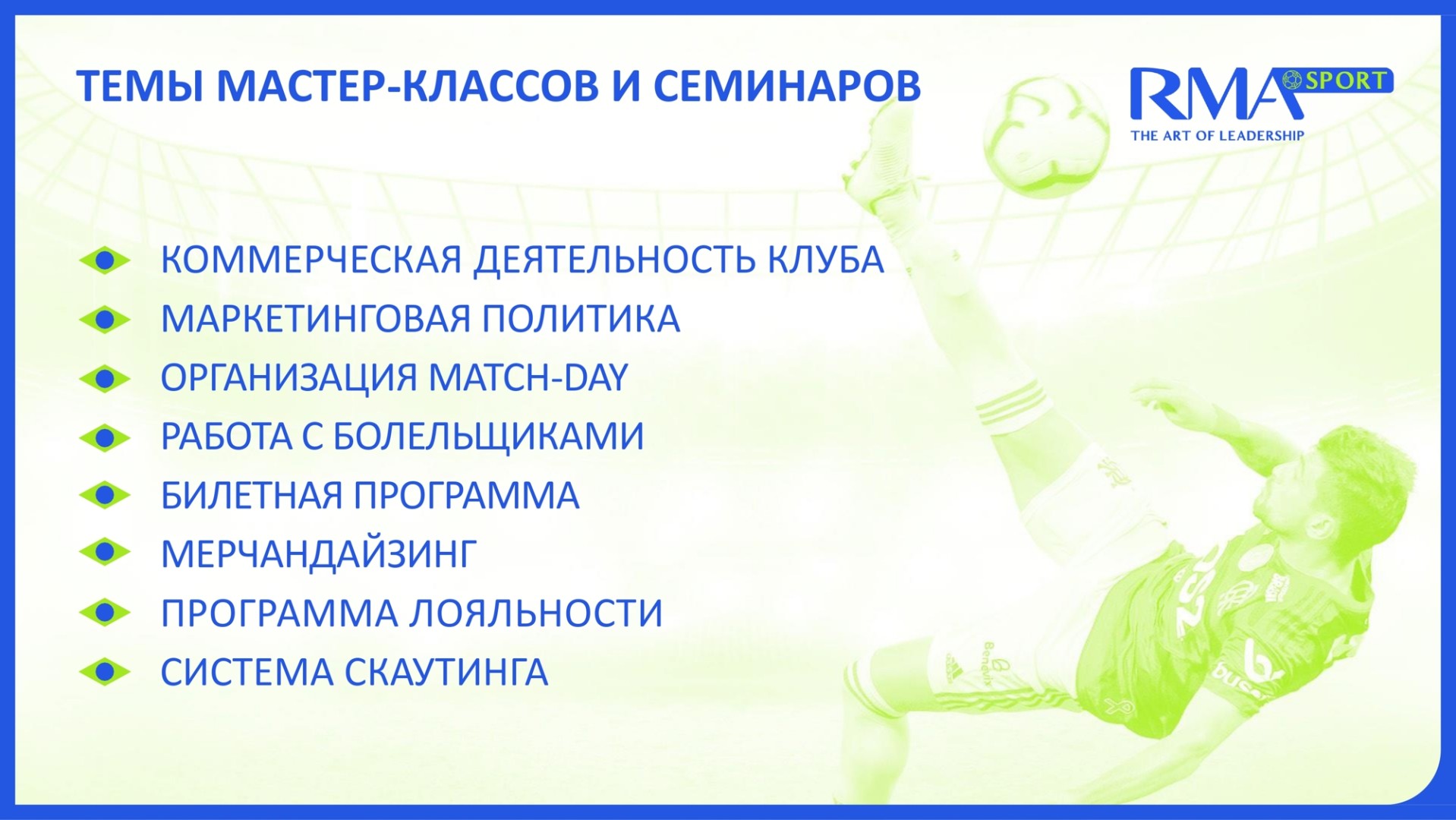 — лекции по коммерческой, маркетинговой деятельности и работе со спонсорами и болельщиками;
