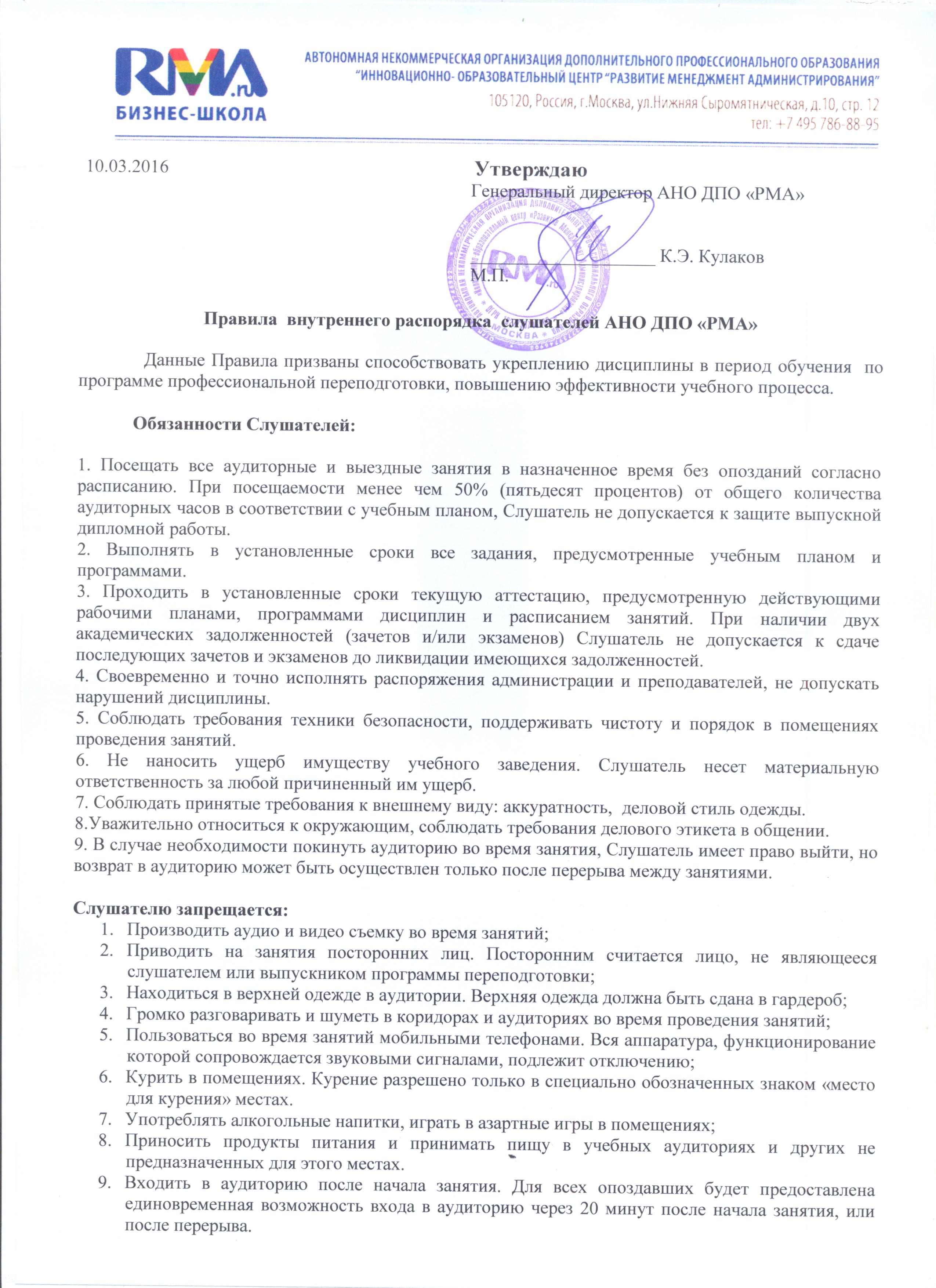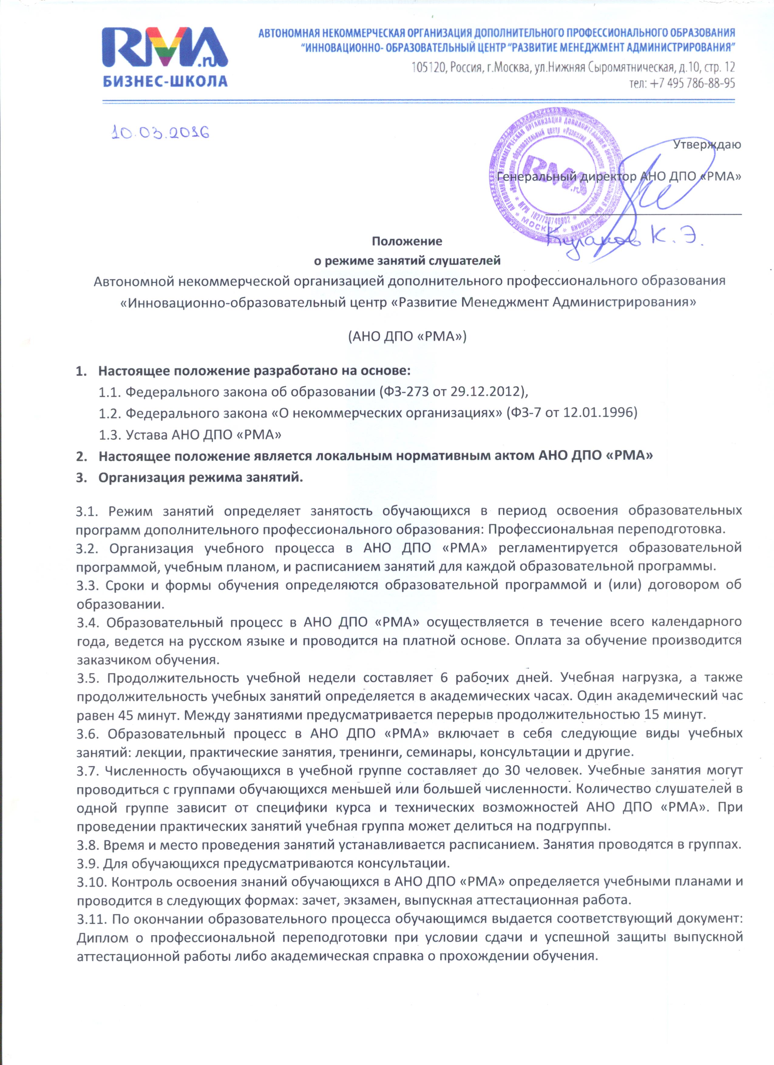 Положение о порядке приема, перевода, отчисления и восстановления слушателей
