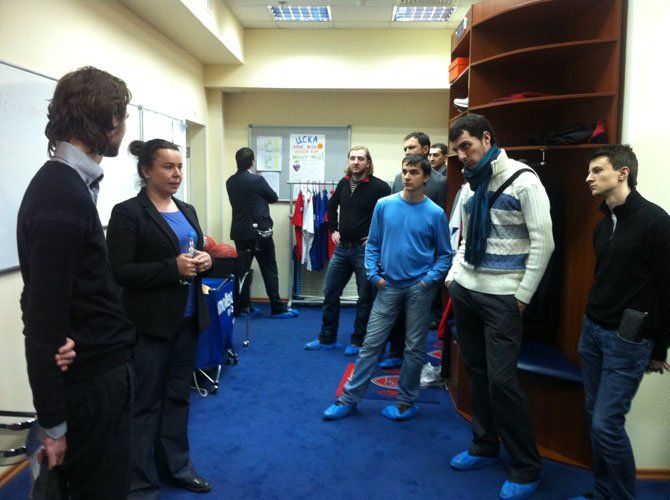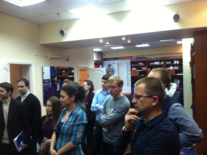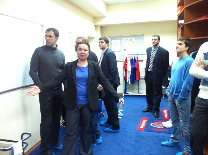 Проводили его вице – президент ПБК ЦСКА по спортивной работе Наталья Фураева и начальник отдела спецпроектов Сергей Рябец. И студентам с их помощью удалось составить, я считаю, достаточно полное представление о том, что такое баскетбольный клуб ЦСКА, как он функционирует, как он управляется, за счет чего зарабатывает, и так далее, и тому подобное. Нас познакомили с инфрастуктурой, провели по тренировочной и основной аренам, раздевалкам, тренажерному залу, кабинетам тренеров, другим офисным помещениям, показали клубный магазин. А потом, уже непосредственно во время лекции, рассказали о структуре ПБК ЦСКА, функциях каждого отдела, селекционной и трансферной политике, специфике спортивной подготовки – как командной, так и индивидуальной, работе со спонсорами, болельщиками и много о чем еще. В общем, получилась, как я уже сказал, достаточно полная картина, за что, конечно, и Наталье Валерьевне, и Сергею Борисовичу огромное спасибо.