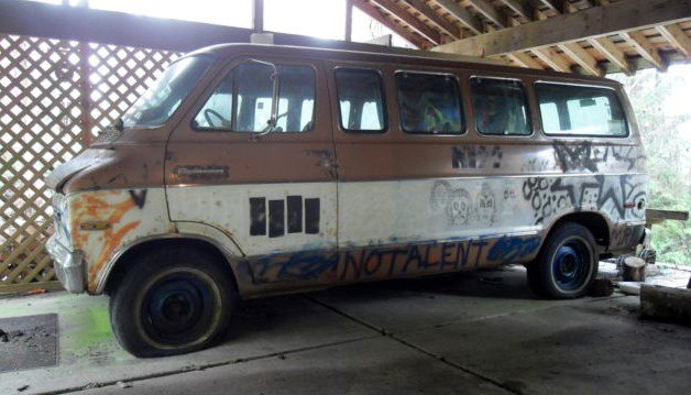 На минивэне Dodge Sportsman Royal Van 1972 года гастролировали участники группы The Melvins, фанатом и приятелем которой был Кобейн. Музыкант, который тогда еще не собрал Nirvana, рисовал черным маркером, украденным в магазине города Монтесано в Вашингтоне. Сообщается, что Кобейн бывал и за рулем автобуса - он периодически подвозил The Melvins на их концерты в городах штата.