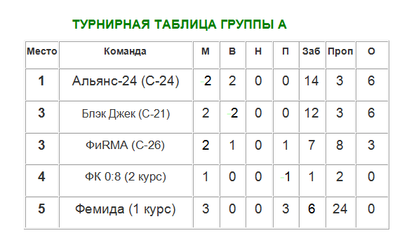 «Блэк Джек» («С-21») – «Фемида» (1 курс) – 10:2