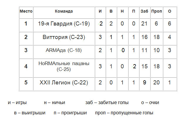 ТУРНИРНАЯ ТАБЛИЦА ГРУППЫ В