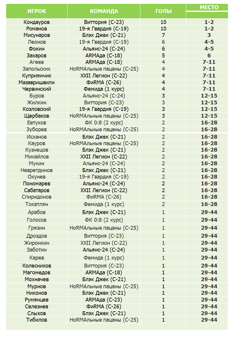 ТУРНИРНАЯ ТАБЛИЦА ГРУППЫ A
