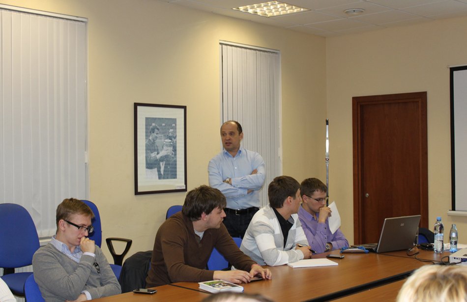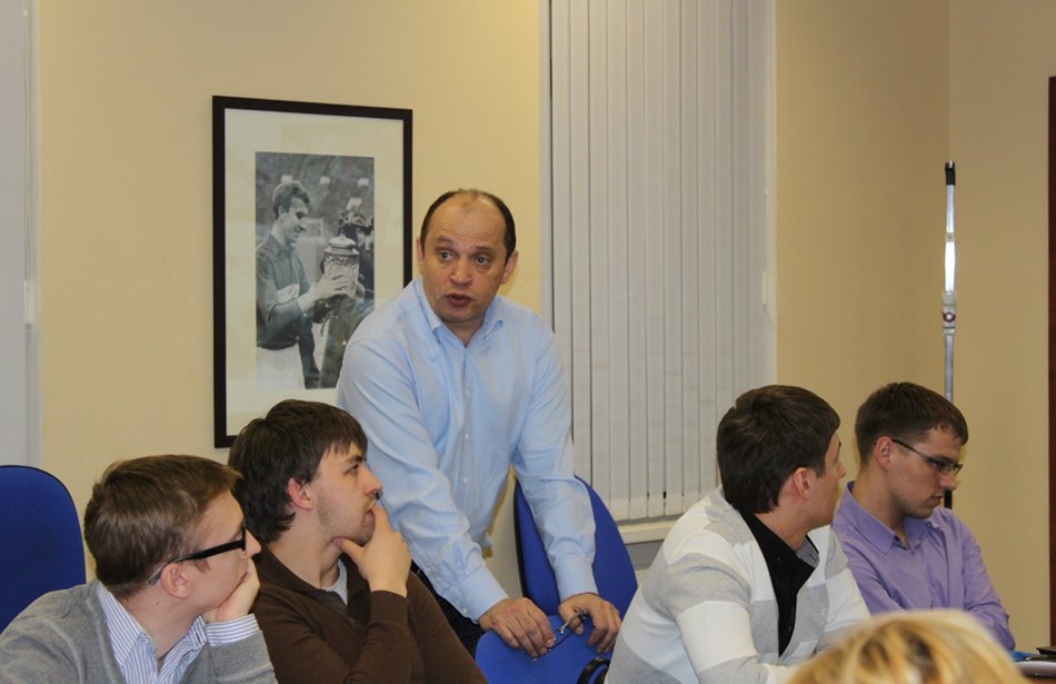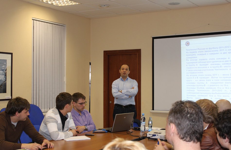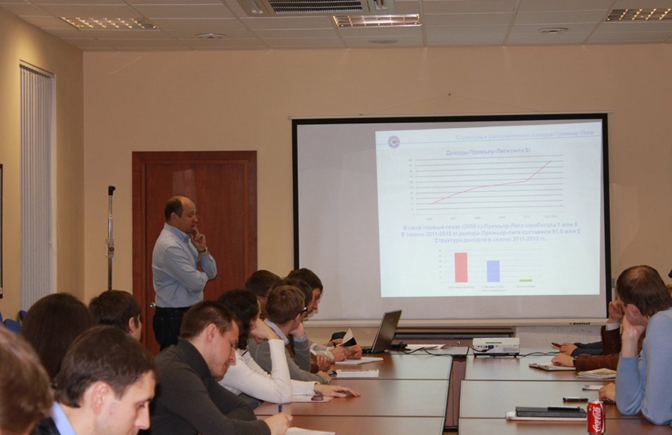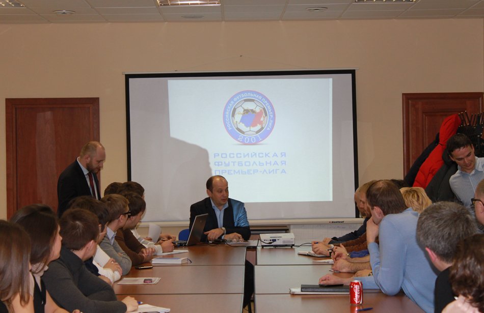 Сотрудничество Российской футбольной премьер – лиги (РФПЛ) со спортивными факультетами RMA приобрело системный характер. Лига уже организовала для наших студентов стажировки на празднике в честь своего 10-летия и Открытом Кубке РФПЛ, а сейчас студент группы «С-26» Павел Селезнев проходит практику, выполняя обязанности помощника руководителя международного отдела лиги Евгения Савина. Между тем, 29 марта в Доме футбола на Таганке прошла первая лекция президента РФПЛ Сергея Прядкина для слушателей факультета «Менеджмент в игровых видах спорта». В ходе занятия руководитель высшего дивизиона отечественного футбола рассказал студентам о структуре возглавляемой им организации, ее стратегических задачах, сотрудничестве с такими международными структурами, как УЕФА и Европейская профессиональная футбольная лига (ЕПФЛ), и подробно ответил на возникшие вопросы. Ниже мы приводим избранные фрагменты рассказанного им во время занятия.