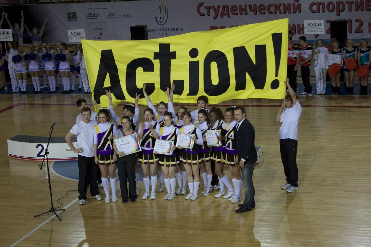 С 28 по 29 апреля в Казани проходил фестиваль по черлидингу среди студенческих команд , целью которого был отбор лучших из них для участия в Универсиаде-2013. Благодаря поддержке Государственного Университета Управления, инновационно-образовательной компании RMA и программы «Менеджмент в спортивной индустрии» команде «Action!» также довелось принять участие в этом соревновании.