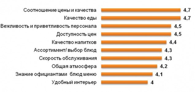 Впрочем, не стоит думать, что рестораны и сети, не упомянутые в обзоре результатов исследования, получили низкие оценки респондентов. Дело в том, что в нем приведены компании-лидеры в наиболее значимых категориях. У других игроков рынка оценки в среднем близки к «хорошо», отмечается в публикации на официальном сайте Ромир.