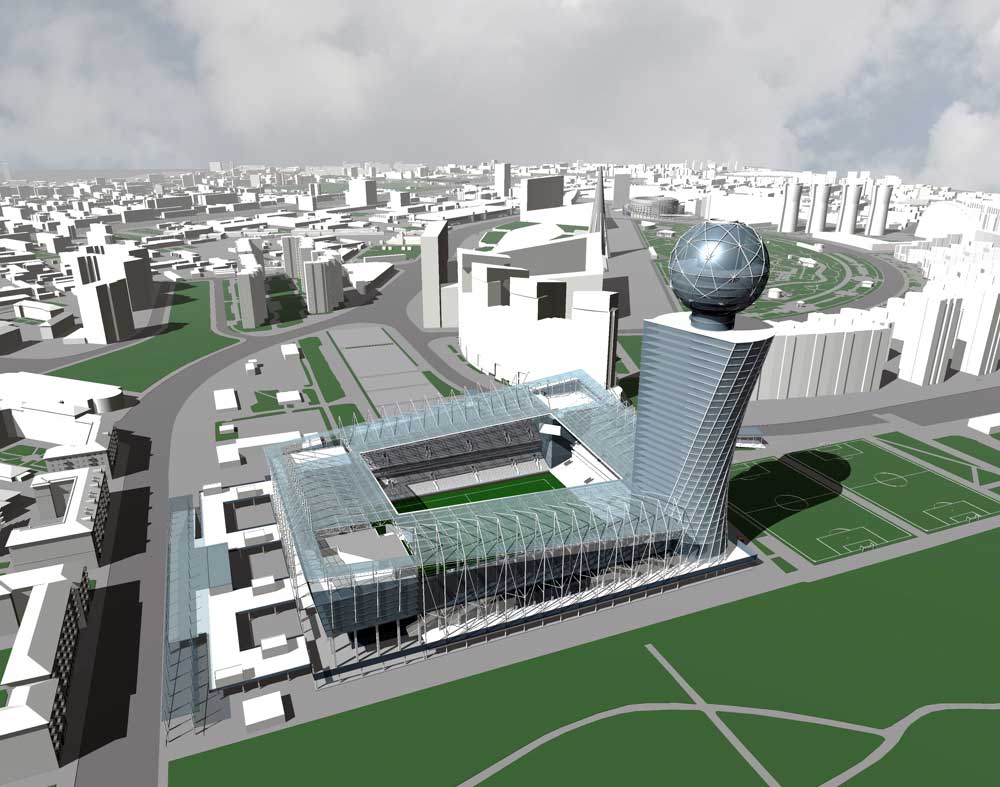 Подземная часть проекта превысит 57 тысяч квадратных ментров. Площадь самого футбольного стадиона ЦСКА составит 78 тысяч квадратных метров. Предполагается, что на нем смогут разместиться до 30 тысяч зрителей. Кроме того, в комплексе будут деловой центр и гостиница — всего 70 тысяч квадратных метров. Они разместятся в стоящей рядом 170-метровой башне, на вершине которой расположится гигантский стеклянный мяч.