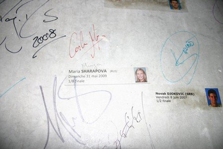 Вообще же «Ролан Гаррос» полон всевозможных историй. В пресс-центре рассказывают, как в 2000 году Андре Агасси, вылетев в первом же круге, проигнорировал обязательную пресс-конференцию, заплатив 20 тысяч евро в качестве штрафа. В женской раздевалке вспоминают про супругу Агасси — Штеффи Граф, которая всегда пользовалась тумбочкой с номером 19. После шести побед на турнирах «Ролан Гаррос» тумбочка была навечно закреплена за немкой, которой в придачу подарили еще и дверцу от нее. Поднимаясь на центральный корт из раздевалок, попадаешь в коридор, все стены которого покрыты маленькими фотографиями и автографами всех, кто сумел одержать здесь победу — без труда находим россиян: Шарапову и Сафину с ее братом, Петрову, Кузнецову и Давыденко.