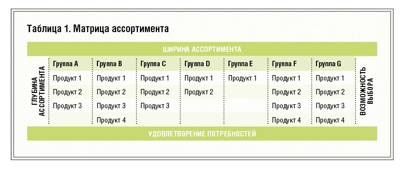 Логика предложения как реакции на спрос подчиняется по сути двум глобальным целям – удовлетворению потребностей гостей и предоставлению возможности выбора в рамках удовлетворяемых потребностей. Масштаб предложения с точки зрения этих целей определяется шириной и глубиной ассортимента ресторана. Ширина ассортимента определяется числом продуктовых групп в меню кафе, бара или ресторана, привязанным к тем потребностям, которые мы стремимся удовлетворить максимально полно. Количество продуктов, представленных в этих группах, указывает на глубину ассортимента с конечным богатством выбора позиций для удовлетворения той или иной потребности (таблица 1).
