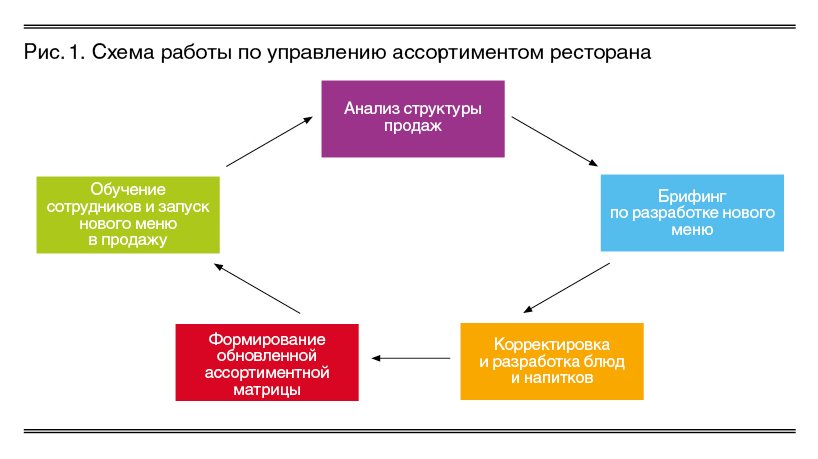 В общем виде схема работы по управлению ассортиментом ресторана циклична и может выглядеть так, как показано на рис. 1.