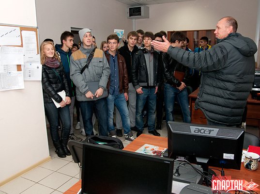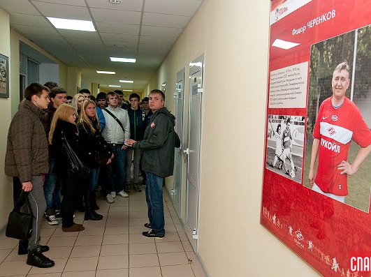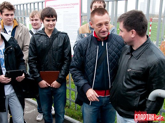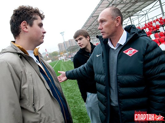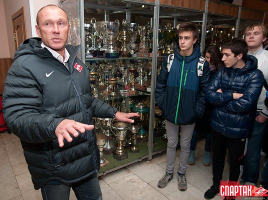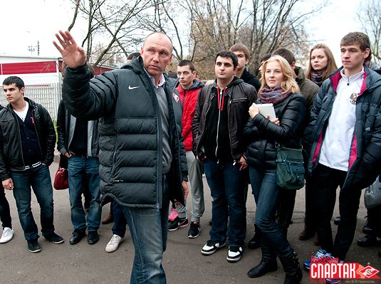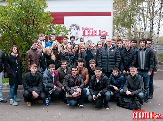 В завершение визита студенты понаблюдали за тренировкой одной из юношеских команд Академии, которую проводил известный в прошлом форвард «Спартака» и сборной России Владимир Бесчастных и сфотографировались на память с одной из главных звезд клуба 90-х годов Андреем Тихоновым, недавно закончившим карьеру футболиста и теперь работающим заместителем Родионова.