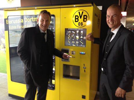 «Действительно, это первый автомат такого рода. Наша цель — обеспечивать болельщиков атрибутикой клуба в тех местах, где нет специализированного магазина. У нас приятные цены", — заявил менеджер «Боруссии» по сбыту и маркетингу.