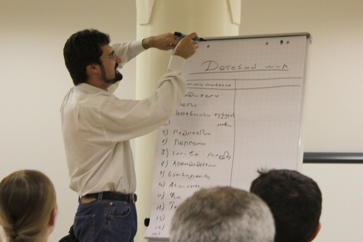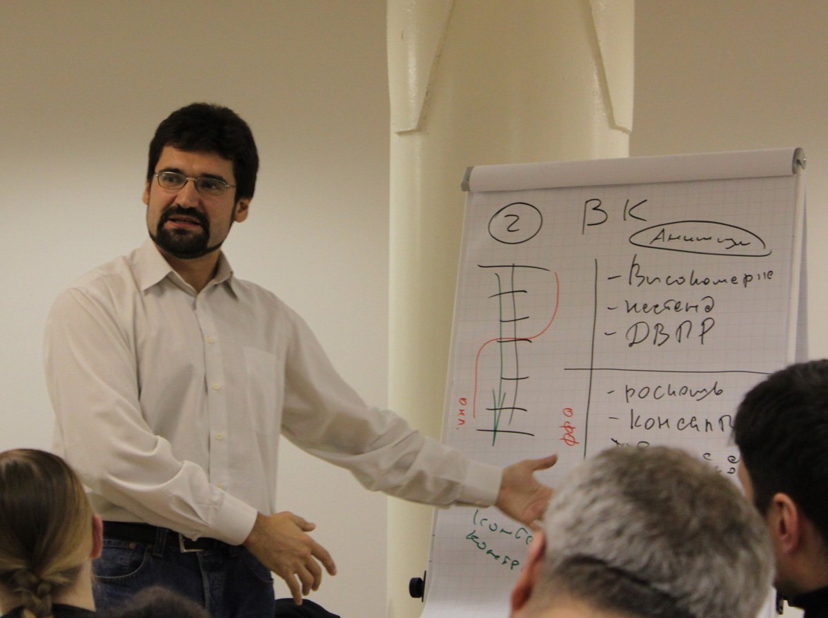 Свою лекцию Федор начал с вопроса: «Что же такое маркетинг? И какую роль в нем играет интернет?». Выслушав варианты студентов, он предложил свою оригинальную версию: «Представьте огромные весы, на одной чаше которых находятся все ваши ресурсы (деньги, люди, преференции и т.д.), на другой – спрос рынка (клиенты, деньги, давление конкурентов и пр.). Так вот, маркетинг – это процесс поиска баланса между этими чашами.