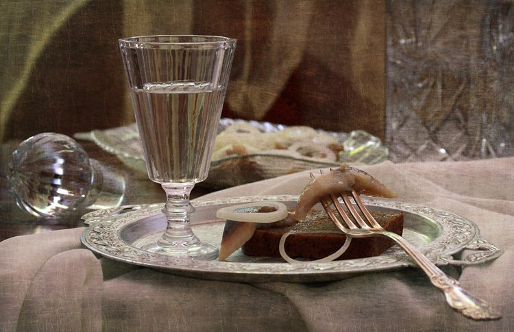 Разные времена года требуют разных напитков. Скажем, лето я не представляю себе без большого количества холодного белого вина, разбавленного легкой газировкой типа San-Pellegrino. Красное у меня лучше всего пьется ранней осенью, особенно если ту приходится встречать в Европе. Зато поздняя осень и зима — это, без всякого сомнения, время водочное. Когда колесишь по России, просыпаясь морозным утром то в Угличе, то в Нижнем, то в Шуе, и видишь вокруг себя стылые раздолья, украшенные белыми свечками колоколен, а коли повезет, услышишь еще и гусей крикливых караваны, то с особой силой начинает тянуть к ней, родимой, горькой, холодненькой… Ну и чтобы потом в рот какой-нибудь холодец с хреном запустить или соленый огурчик с медом. И никаких пицц, никаких суши организм не приемлет! На рукколу с креветками вообще аллергия. Даешь только наше, родное, сермяжное!..
