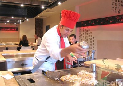Гости рассаживаются вокруг стола, выбирают в меню блюдо, и начиная с этого момента забывают, что пришли в ресторан. Повара в красных колпаках словно превращаются в волшебников и начинают колдовать, подбрасывая в воздух компоненты будущего блюда, жонглируя кухонными приборами и постоянно обмениваясь шутками с застывшими от удивления гостями.