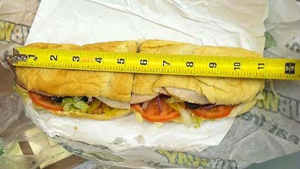 Сеть ресторанов быстрого питания Subway уличили в обмане покупателей, сообщает ABC News. В сети появилась фотография, на которой сэндвич из Subway длиной в один фут (12 дюймов) был сфотографирован рядом с линейкой и отметкой в 11 дюймов. Фотография была выложена в фейсбук австралийцем по имени Мэтт Корби (Matt Corby). К фотографии Корби добавил подпись: «Subway, отреагируйте, пожалуйста». На настоящий момент фотография из социальной сети удалена. Как отмечает ABC News, она успела набрать более 130 тысяч лайков.