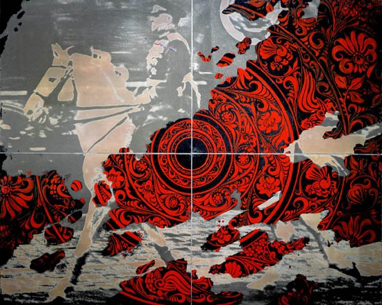 Произведения представляют собой крупноформатные живописные объекты, исполненные на высокотехнологичном композитном материале – дибонде».