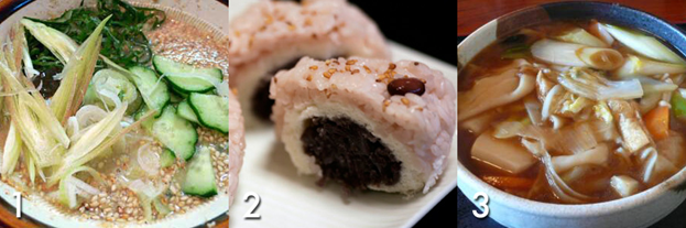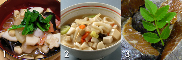 1. Noppei Jiru – суп из овощей, приготовленных в кунжутном масле. Это блюдо часто едят на фестивалях, буддийских церемонии, и подают к столу на Новый год.