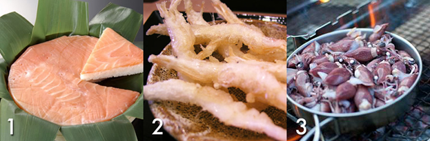 3. Saba no Heshiko – скумбрия из префектуры Фукуи. Целиковую скумбрию очищают, солят, а затем кладут в рисовые отруби. Далее рыбу разделывают на кусочки и поджаривают на гриле, прямо перед употреблением.
