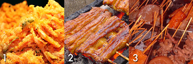 2. Unagi No Kabayaki – кусочки угря насаживают на шпажки очень близко друг к другу и жарят на огне, сдабривая соевым соусом.