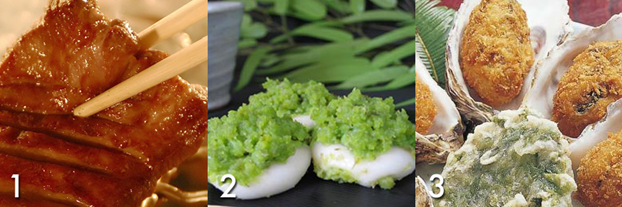 1. Yaki Manjuu – соцветья пшеницы, маринованные в саке, из которых готовят небольшие клецки. Подаются с солено-сладким соевым соусом.