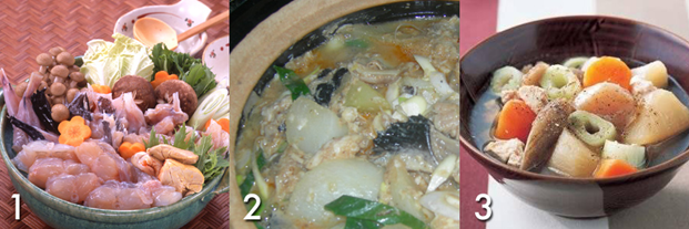 1. Imo Nabe – картофель, приготовленный на медленном огне в специальной посуде, как правило, чугунном горшке с очень толстыми стенками. Картофель тушится вместе с маслом продолжительное время и приобретает неповторимый золотистый цвет.