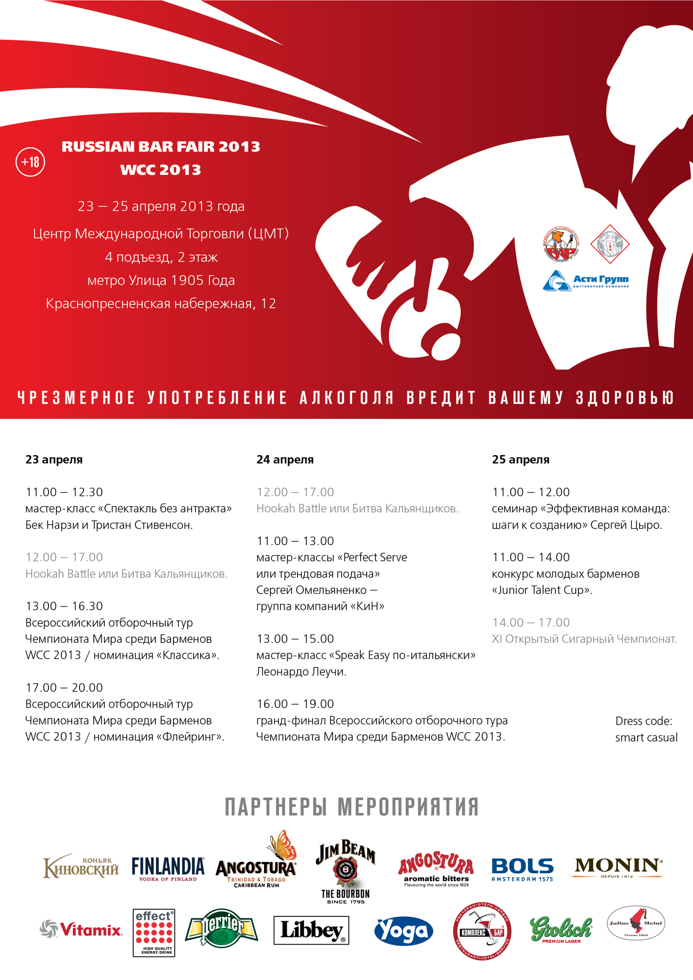 23-25 апреля в «World Trade Сentre», Барменская Ассоциация России и выставочная компания «Асти Групп», проведут Всероссийский отборочный тур Чемпионата Мира среди барменов WCC 2013, в рамках выставки «Russian Bar Fair». Факультет «Менеджмент в ресторанном бизнесе и клубной индустрии» RMA выступает информационным партнером мероприятия.