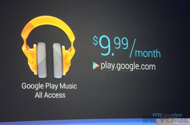 Корпорация Google представила музыкальный сервис Google Play Music All Access, работающий по подписной модели. Он был анонсирован 15 мая на конференции Google I/O, передает The Verge. Google Play Music All Access позволяет прослушивать музыку из многомиллионной коллекции треков, хранящихся на серверах корпорации. Доступ к сервису будет стоить 9,99 доллара в месяц (до 30 июня цену снизили на два доллара). Бесплатный пробный период использования сервиса составит один месяц.