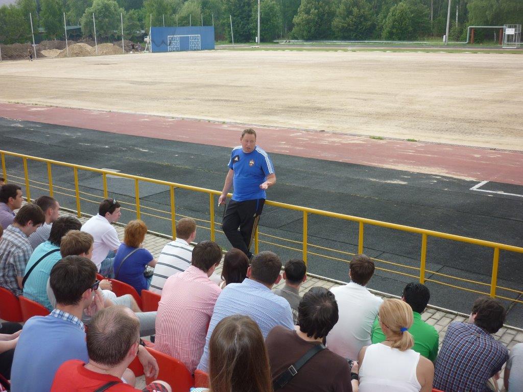 27 июня футбольный ЦСКА отправился в Китай, где в рамках коммерческого турне ему предстоит провести матчи с молодежной командой провинции Цзянсу и клубом китайской Суперлиги «Цзянсу Сэйнти». Незадолго до отъезда на тренировочной базе армейцев в подмосковных Ватутинках прошла встреча Леонида Слуцкого со студентами факультета «Менеджмент в игровых видах спорта» бизнес-школы RMA, во время которой главный тренер ЦСКА рассказал о том, как чемпионы России готовится к новому сезону, и подробно ответил на вопросы, касающиеся самых разных аспектов жизни клуба.