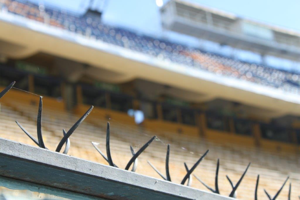 Шипы на заборе, ограждающем футбольное поле "Бомбонеры" от трибун