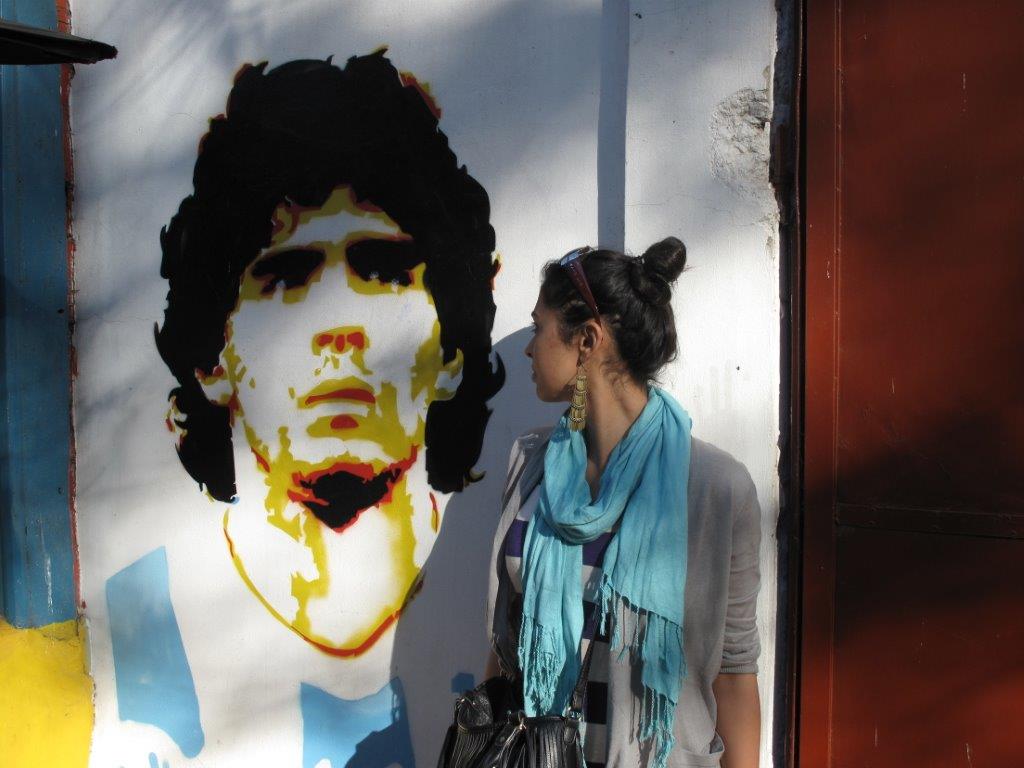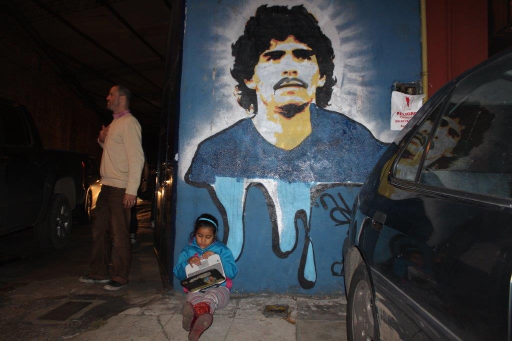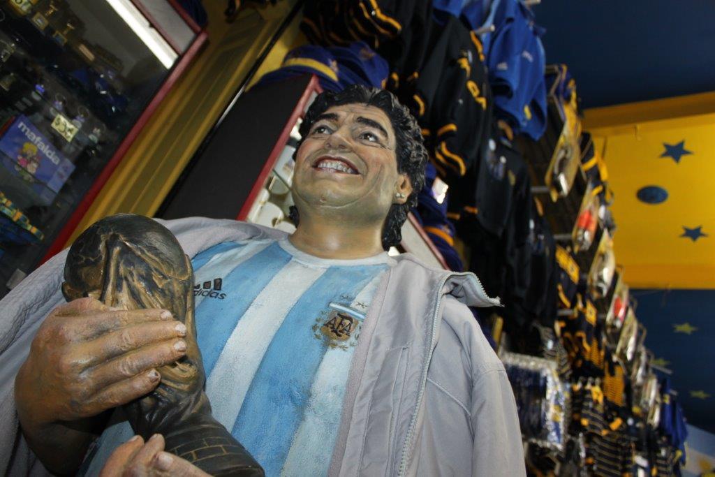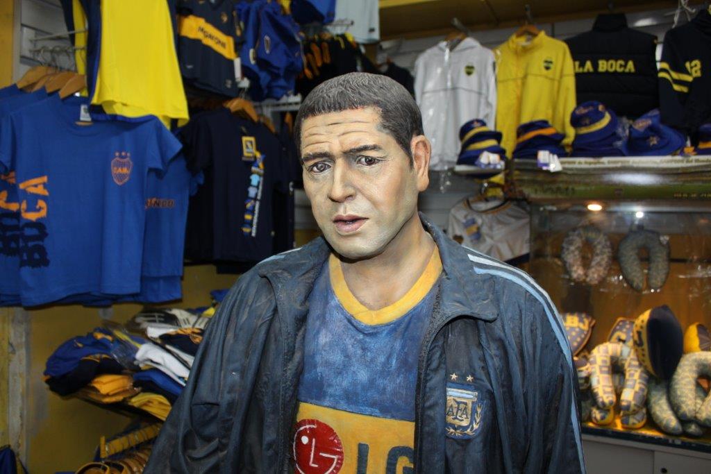 Одна из многочисленных лавок, торгующих атрибутикой "Боки" в окрестностях "Бомбонеры". Фигура Диего Армандо Марадоны
