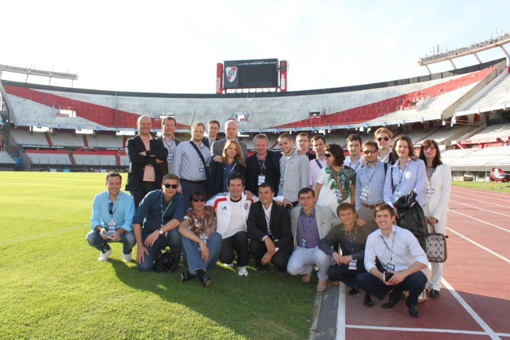 Участники латиноамериканской стажировки студентов факультета "Менеджмент в игровых видах спорта" на стадионе "Монументаль"