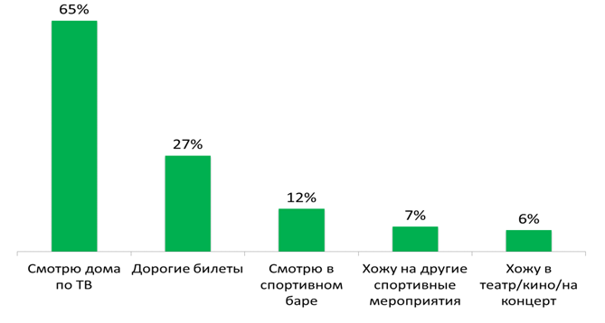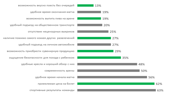 Средняя стоимость билета в КХЛ – 371 рубль, максимальная средняя стоимость – 600 рублей, минимальная – 127 рублей. Такая низкая стоимость билетов не позволяет клубам зарабатывать на своих матчах, а тот факт, что «приемлемая цена на билет» является вторым по значимости фактором для болельщиков, можно смело утверждать, что текущая аудитория КХЛ при увеличении клубами цен на билеты перестанет ходить на матчи, а вот придет ли на матчи другая аудитория – это большой вопрос, так как маркетинговая стратегия клубов пока не нацелена на привлечение другой аудитории.