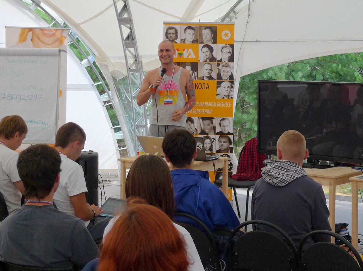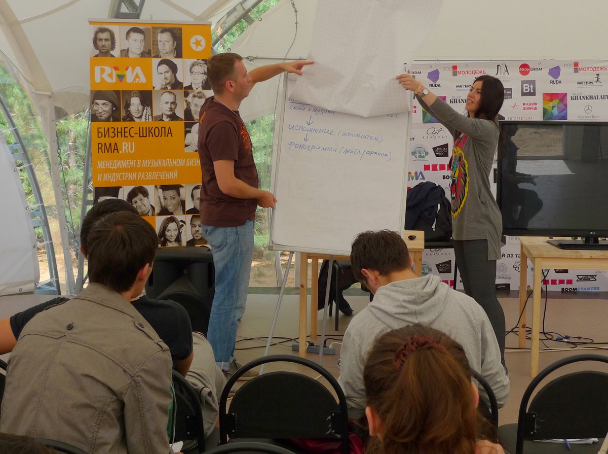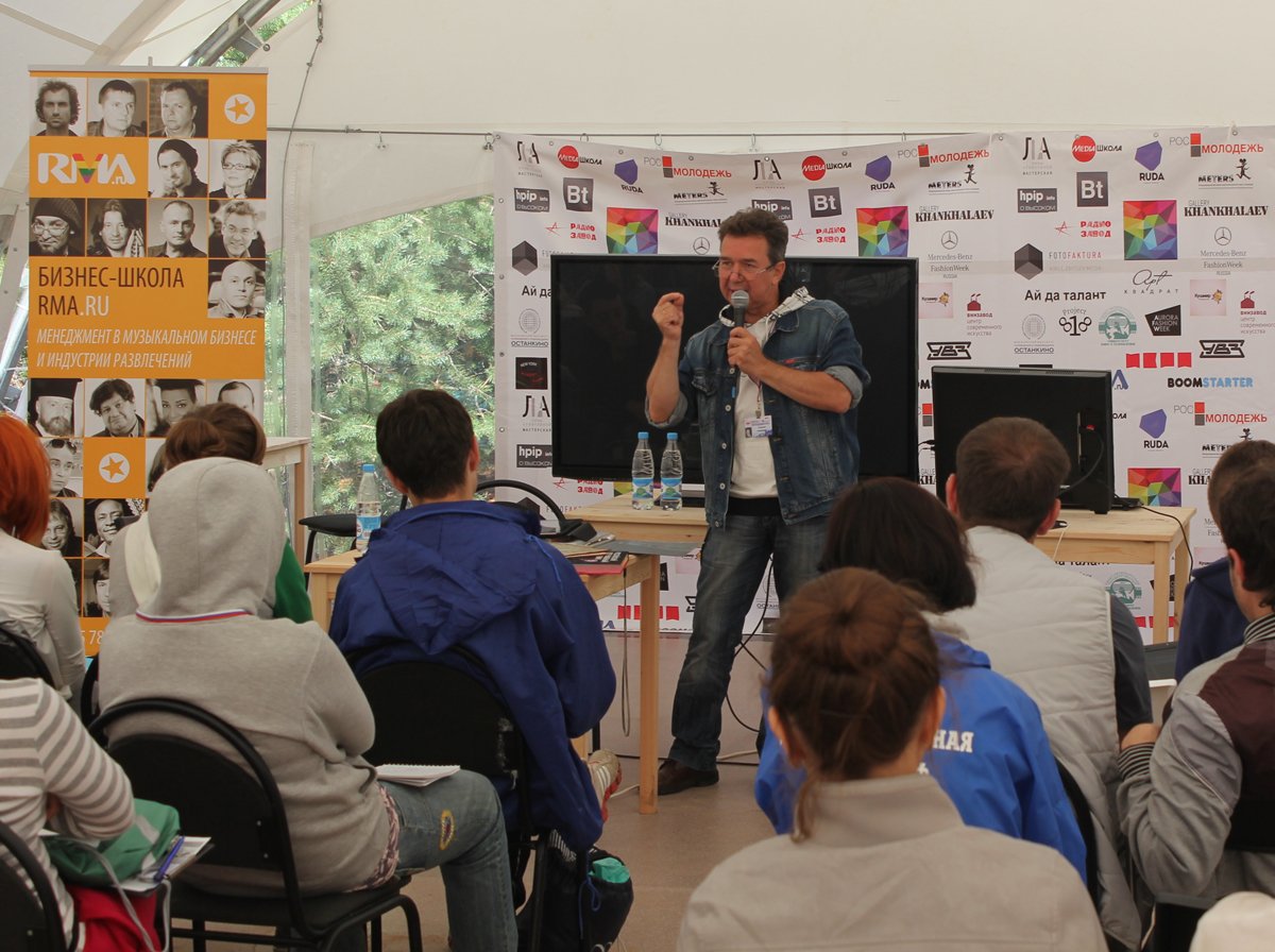 Одновременно в шатре «Толстой» прошли мастер-классы по менеджменту в музыкальной индустрии, где выступили директор и главный эксперт информационного агентства InterMedia Евгений Сафронов и Александр Тихонов с рассказом о структуре российского рынка культуры и искусств, а также специфике авторских и смежных прав в России. Певица Диана Гурцкая поделилась опытом работы с продюсерами. А генеральный директор ПЦ «Снегири Музыка» Олег Нестеров поведал аудитории о современной роли музыкального продюсера, а также об организации и стимулировании творческого процесса.
