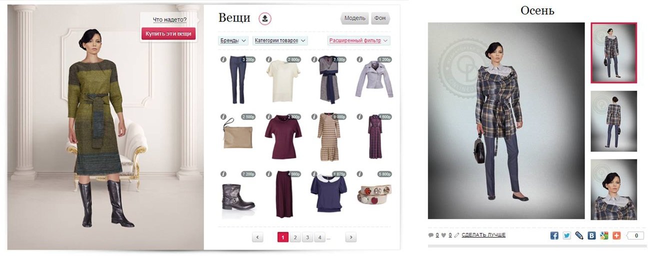 Это был 2010 год, и нам казалось, что все реально. Программистов, которые бы сразу смогли развеять наши мечты, под рукой не оказалось, поэтому мы пошли напролом. Сделали тестовую flash версию виртуальной 3D-примерочной, потратив на это год и энное количество средств, и поняли, что получить хорошую картинку, которая бы удовлетворила заказчиков – крупные fashion бренды, – нам не удастся просто по тому, что технологий не существует. Пришлось отказаться от этой идеи и разработать имитатор 3D, который сейчас работает у нас на сайте. По сути, это качественные снимки одежды, передающие текстуру и цвета, в двух ракурсах – спереди и сзади. Эту одежду можно «примерить» на виртуальную модель. Из минусов – нельзя покрутить картинку, добавить свою фотографию или задать параметры модели. Зато есть возможность комбинировать вещи разных дизайнеров, представленных в магазине, создавать и сохранять свои луки, а также делиться ими с друзьями. Таким образом, мы получили эффективный инструмент по созданию стиля.