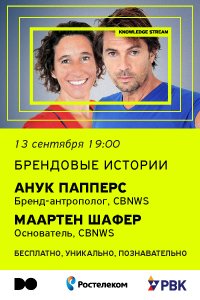 13 сентября центр Digital October организует лекцию-телемост с Маартеном Шафером и Анук Папперс, основателями компании CoolBrands и авторами альманаха «Вокруг света за 80 брендов». Они называют себя «антропологами бренда» и в рамках проекта Knowledge Stream расскажут, как создать историю о себе или компании, которая «пойдет в народ», а также проведут закрепляющий интерактив с аудиторией.