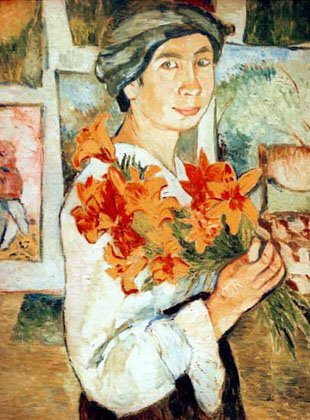 Наталья Гончарова (1881-1962) является не только одной из самых известных представительниц русского авангарда, но и самой дорогой русской художницей. Работа Гончаровой «Цветы» (1912) была продана на торгах Christie’s в 2008 году за рекордную цену 10,9 миллиона долларов, в два раза превысившую сумму предварительной оценки.