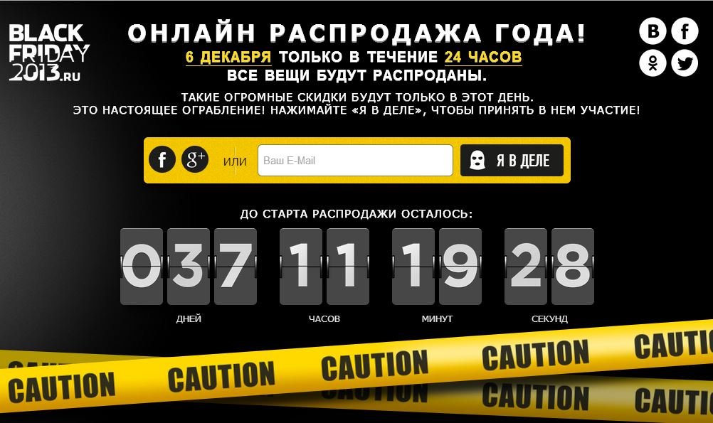 Уже 6 декабря российские пользователи смогут приобрести одежду, книги, косметику, электронику и тысячи других товаров со скидкой до 90%. Для этого им нужно будет воспользоваться услугами проекта BlackFriday2013, совместно с которым крупнейшие российские онлайн-ритейлеры проводят «чёрную пятницу» тотальных распродаж.