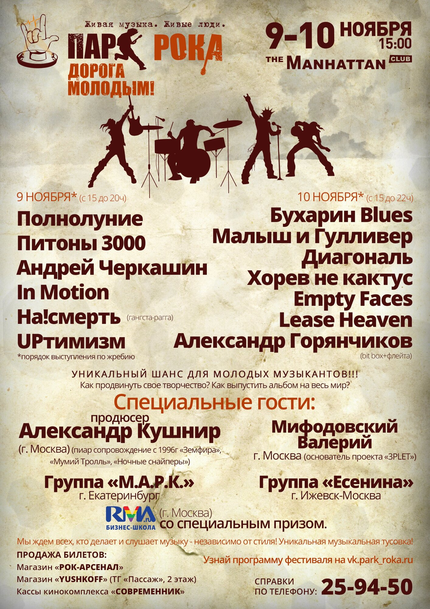 Приглашенные группы: «Есенина», Москва, «М.А.Р.К.», Екатеринбург – группы, чье творчество продвигается агентством «Кушнир Production»