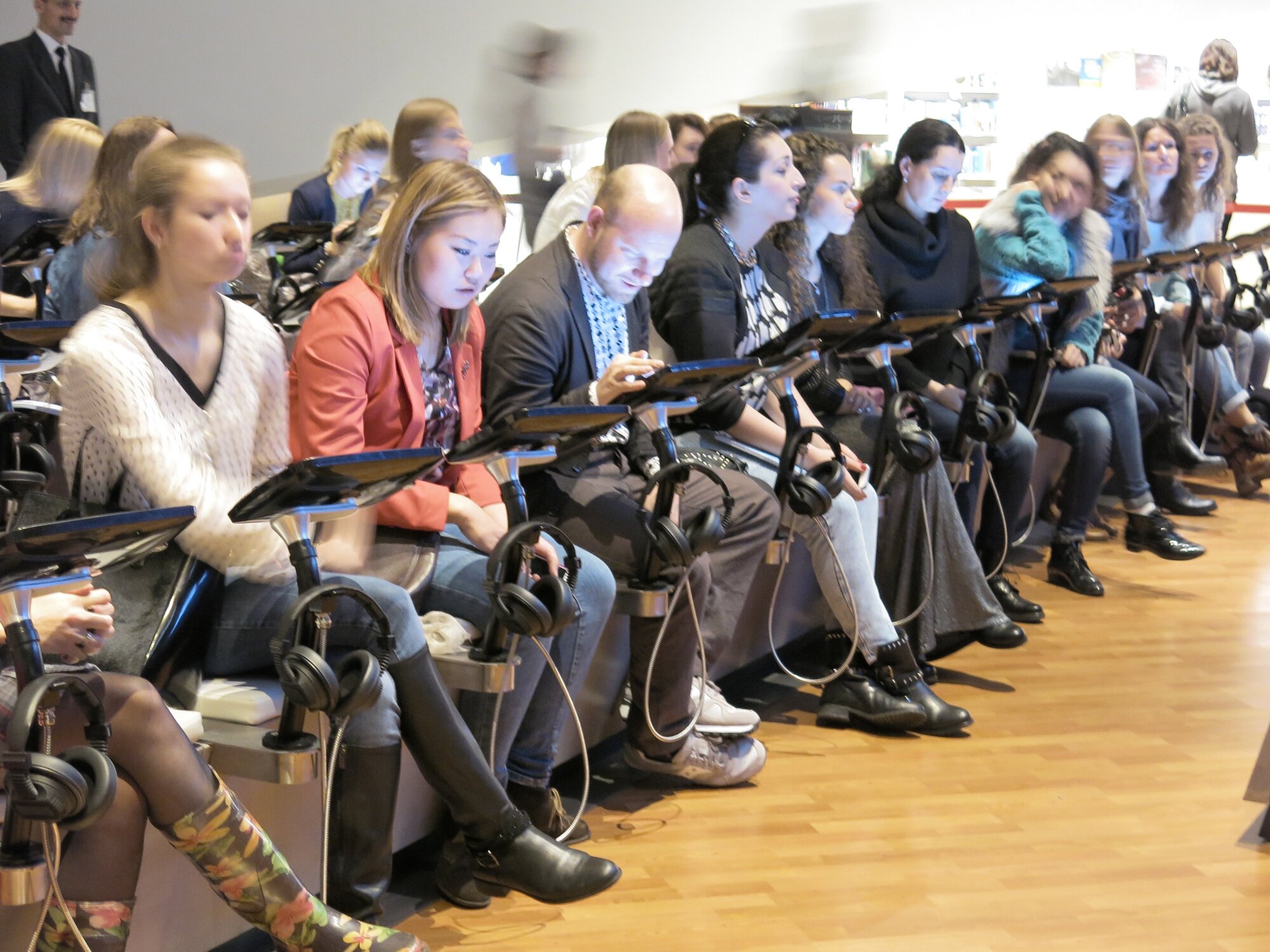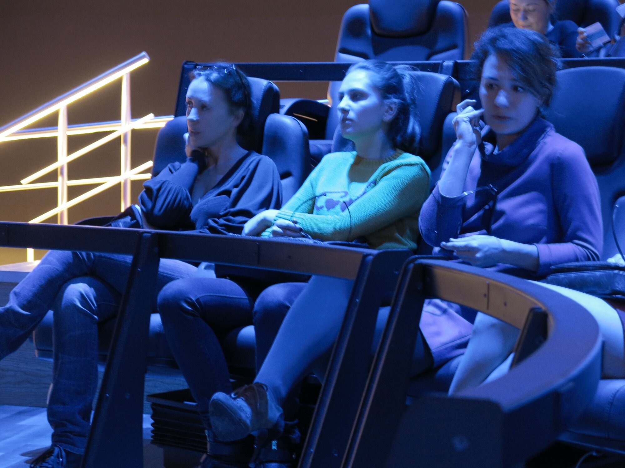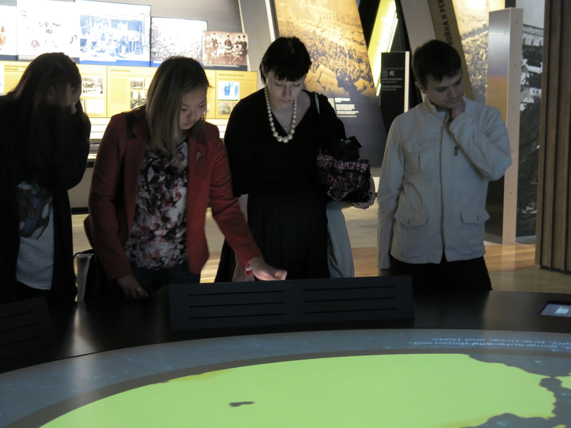 Для слушателей факультета «Арт-менеджмент и галерейный бизнес» провели экскурсию по основной экспозиции музея, которая настолько интерактивна, что напоминает аттракцион. Начинается экскурсия с 4D-кинозала, в котором рассказывается всем известная история сотворения мира, возникновение основных религий, и формирование еврейской диаспоры. Благодаря современным технологиям, можно на себе испытать дождь, шторм, нашествие саранчи и переход через Красное море.