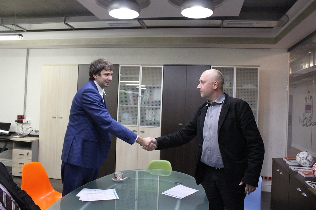 Бизнес – школа RMA заключила соглашение о партнерстве с агентством First Sport Consulting Company, основанным в сентябре 2013 года выпускником группы «С-28» факультета «Менеджмент в игровых видах спорта» Кириллом Маматовым (на фото - слева, вместе с руководителем RMA Кириллом Кулаковым). В проекте также принимают активное участие выпускники той же группы Денис Брагин и Андрей Мишин.