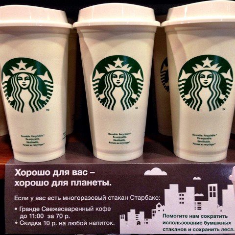 Таким образом Starbucks пытается сократить использование бумажных стаканов и сохранить леса.