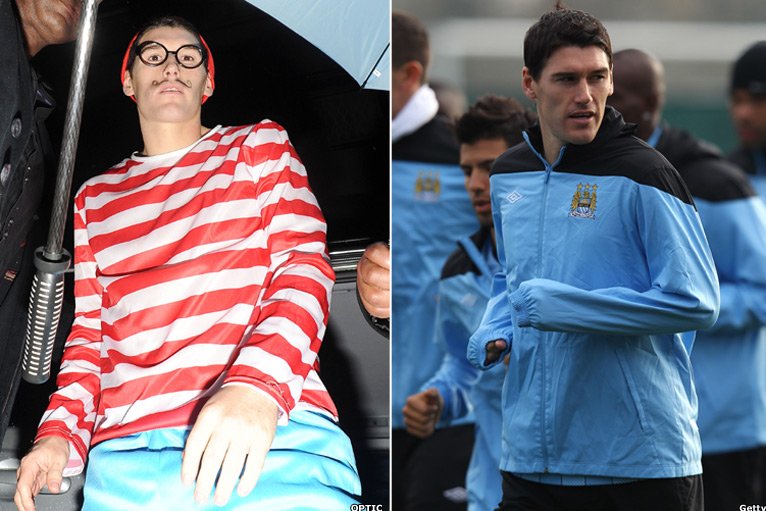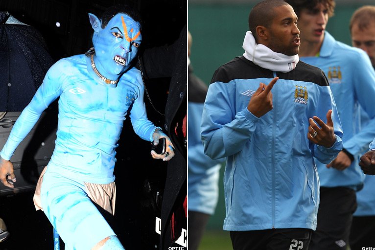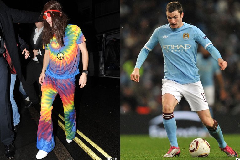 Рождественская вечеринка «Сити» 2011 года. Сверху вниз — Гаэль Клиши в костюме персонажа «Аватара», Адам Джонс (хиппи), Марио Балотелли (Майкл Джексон), Гарет Барри (Уолли)