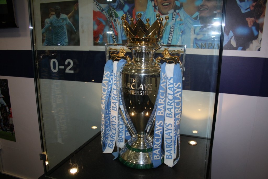 В клубном музее. Копия чемпионского Кубка, завоеванного «Сити» в сезоне 2011/12