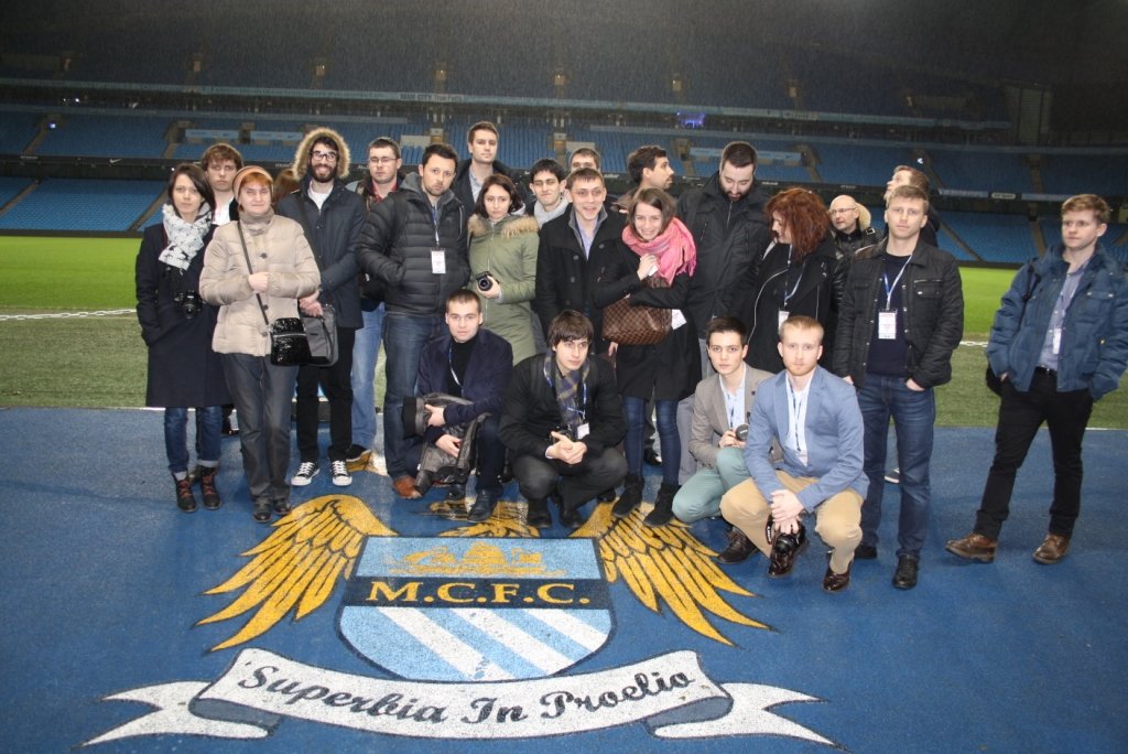 Cтуденты факультета «Менеджмент в игровых видах спорта» и другие участники стажировки «Футбольный бизнес Англии» на «Этихад Стэдиум», домашней арене «Манчестер Сити»