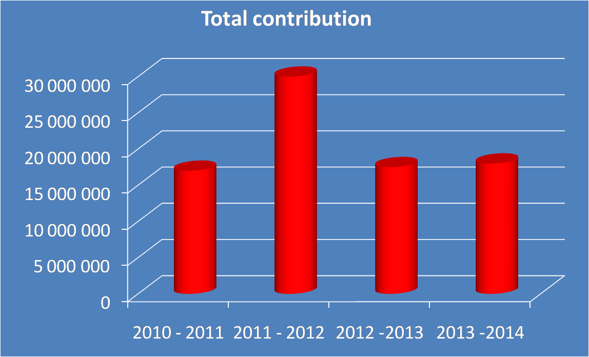 Диаграмма отражает доходы «Генка» в 2010 – 2014 годах. Резкий всплеск в сезоне 2011/12 объясняется продажей в «Челси» воспитанника клуба, вратаря Тибо Куртуа. Его трансфер принес «Генку» 9 миллионов евро