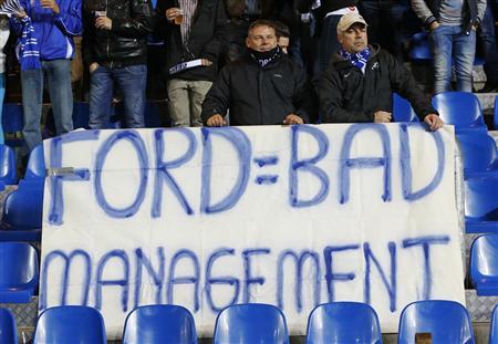 25 октября 2012 года. Болельщики «Генка» перед домашним матчем Лиги Европы против лиссабонского «Спортинга» выражают свое отношение к решению о закрытии базирующегося в городе завода «Форд»