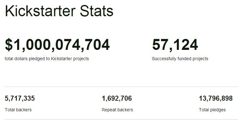 Пользователи краудфандинг-сайта Kickstarter потратили более одного миллиарда долларов на коллективное финансирование различных проектов, свидетельствует официальная статистика Kickstarter.
