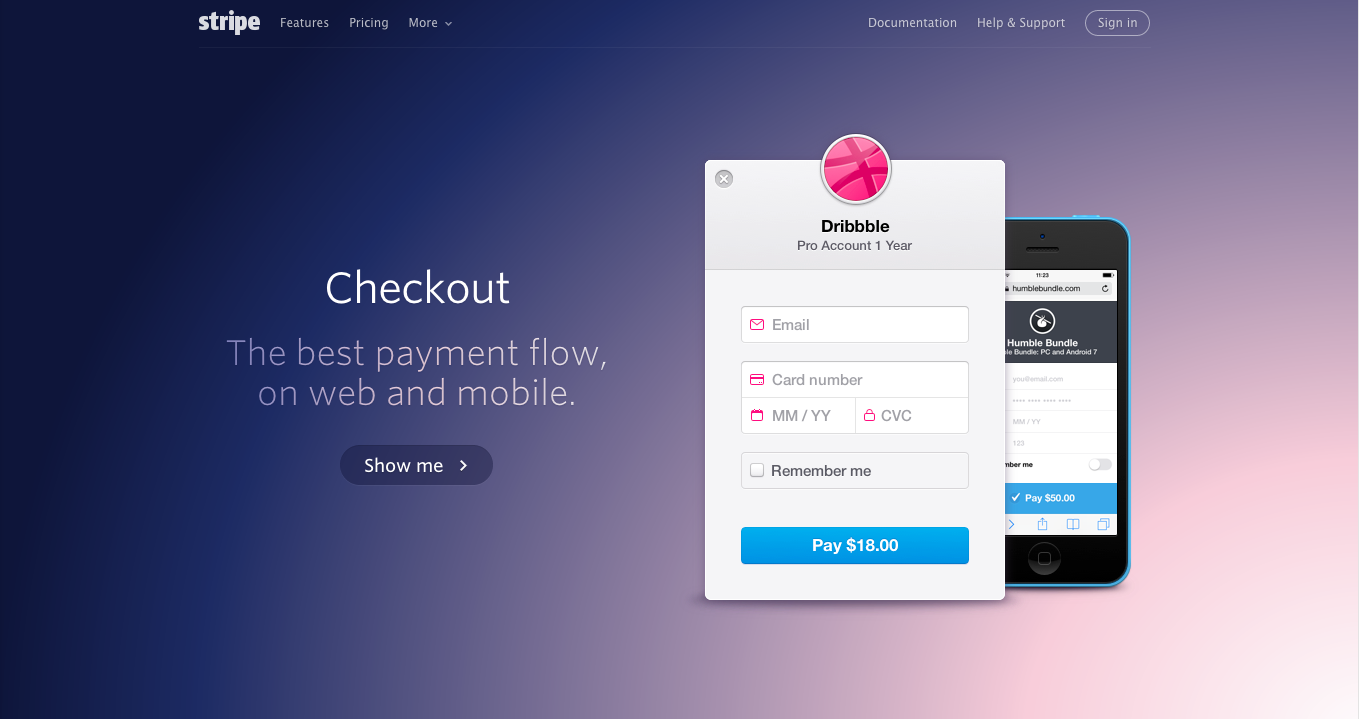 «Checkout создан на основе Stripe.js и генерирует стандартный Stripe-токен. Вы можете использовать токен, чтобы привязать карту, создать аккаунт клиента и начать подписку. На первый взгляд, новая технология может решить извечную проблему мобильных платежей для продавцов».